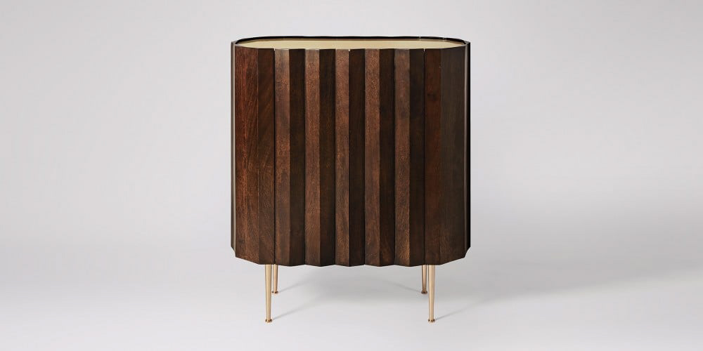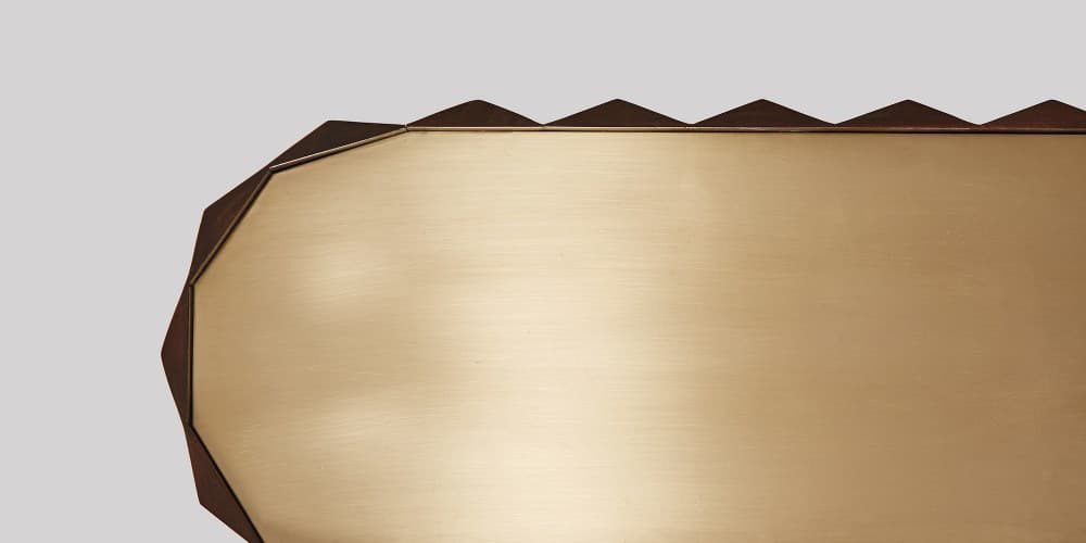 Designed for online retailer Swoon Editions, Kiln is a uniquely profiled pill shaped storage collection. Manufactured in mango wood with hand finished brass foil tops. Launched October 2019.
